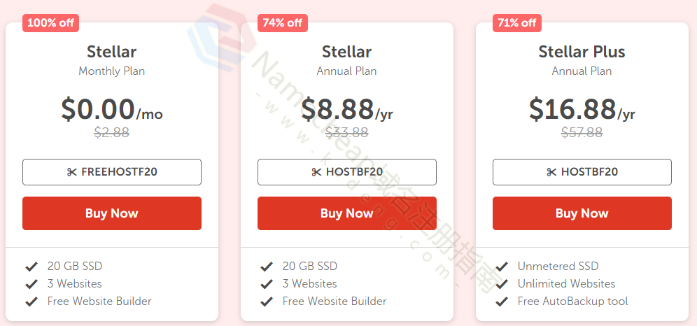 优惠码:FREEHOSTF20(仅适用于Stellar首月免费)